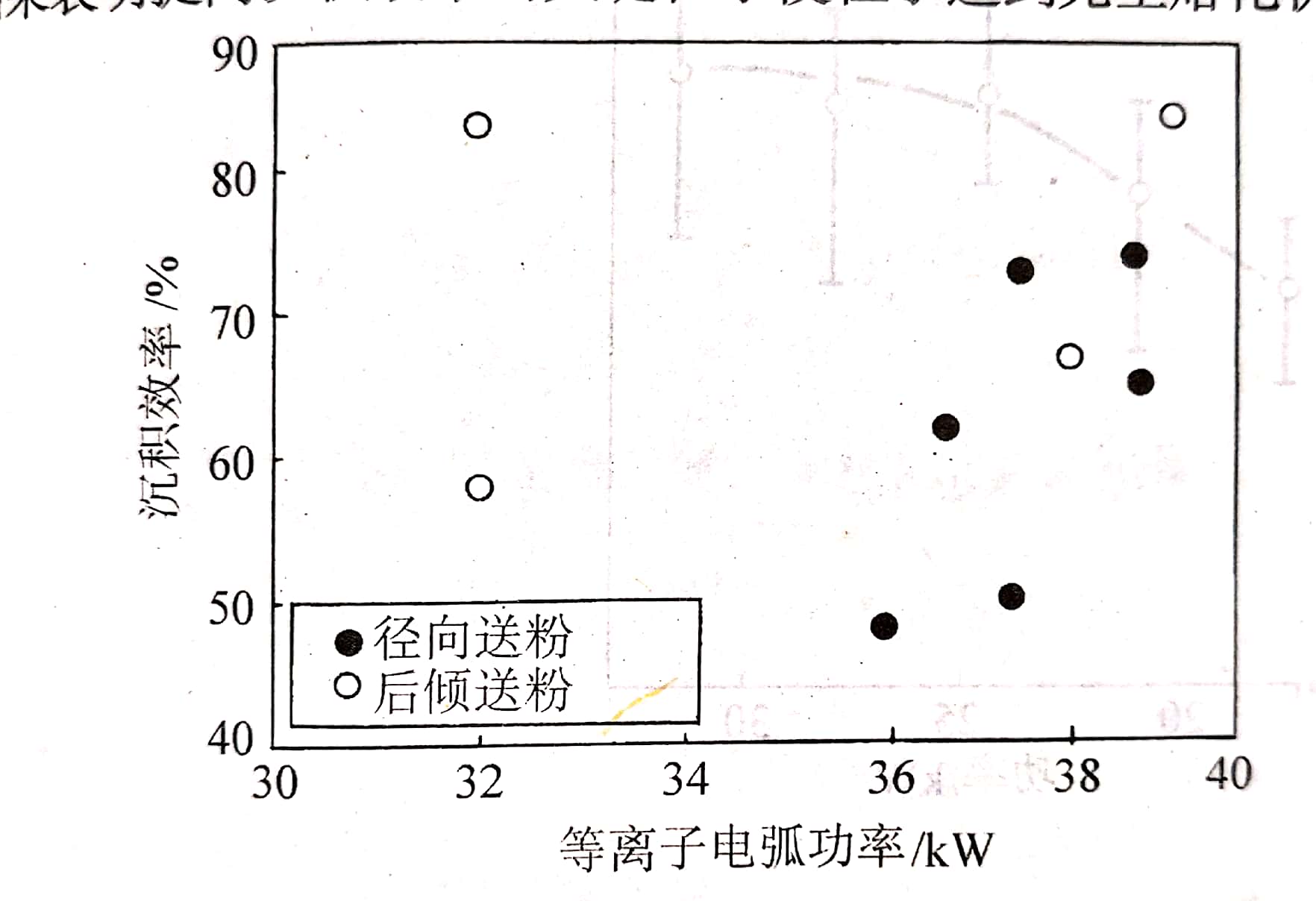 圖(1)氧化鋯涂層沉積效率隨等離子電弧功率的變化
